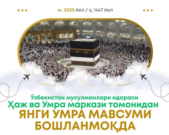 O‘zbekiston Musulmonlari idorasi huzuridagi Haj-umra markazi yangi umra mavsumi 2025 yil avgust oyidan boshlanishini e’lon qildi.