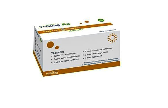 Mazkur VivaDiagTM Pro SARS-CoV-2Ag ekspress-test insonda SARS-CoV-2’dan nukleokapsid oqsil antigenini tez, sifatli aniqlash uchun mo‘ljallangan. Bu o‘z-o‘zini tekshirib ko‘rish uchun test.