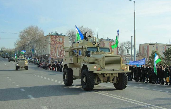 Festival harbiy texnika vositalari, mudofaaga ko‘maklashuvchi "Vatanparvar" tashkilotining sport-transport vositalari va harbiy xizmatchilarning Registon ko‘chasi bo‘ylab Ko‘ksaroy maydonigacha safda yurishi namoyishi bilan boshlandi.