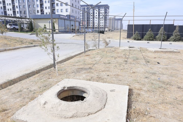 Uylarga raqamlar berilmagan, aholi qaysi uy va xonadonda yashashini aytib berolmaydi. Yo‘l chetidagi kanalizatsiya quduqlarining qopqoqlari yo‘qligidan turli maishiy chiqindilar bilan to‘lgan.