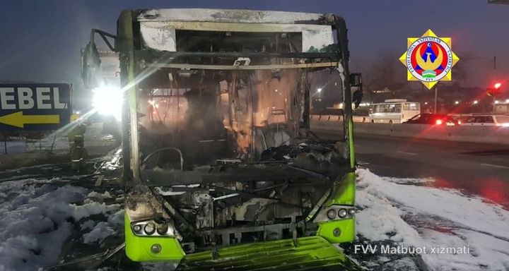 Yo‘lovchi avtobusi yonib ketdi, jabrlanganlar yo‘q