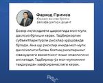 Bosh qomusimiz barqaror iqtisodiy rivojlanish va aholi farovonligini ta’minlashga xizmat qilmoqda 04/12, 10:22 Siyosat